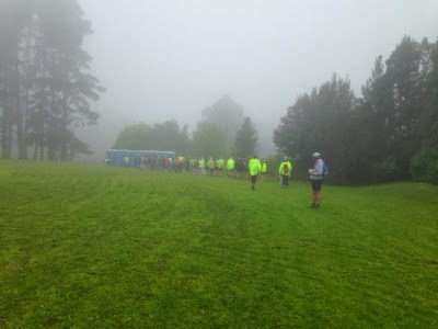 It was still raining when we arrived, and the luggage from truck 7 was in 4 lines under lengths of plastic, piled 3-4 deep. We found the 2 bags easily, but it took ages to find the packs. It stooped raining and we got the tent up, and headed for the showers - very welcome. (That was after sharing a chocolate bar)